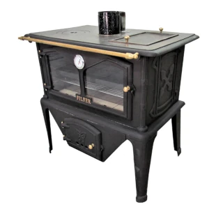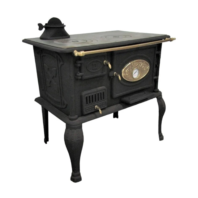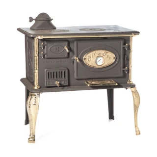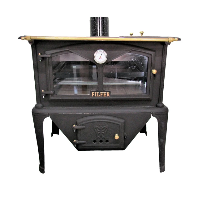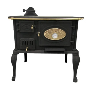 Cenicero, rejilla desmontable, reloj pirómetro en puerta, regulador, 2 hornallas