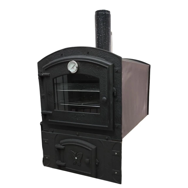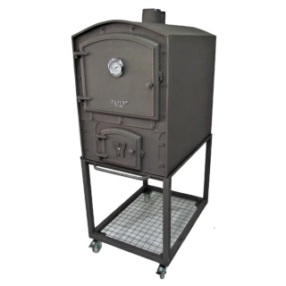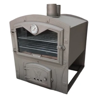 Bandeja (enlozada), rejillas, atizador, ladrillos refractarios, reloj pirómetro en puerta